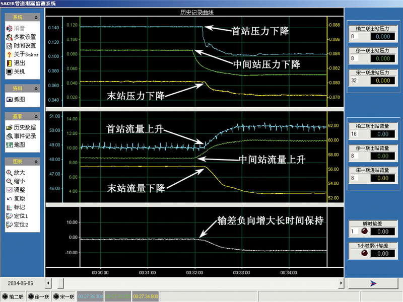 04年6月6日榆二聯(lián)-宋一聯(lián)管線泄漏報(bào)警曲線圖