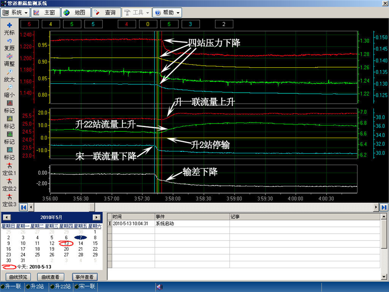 升一聯(lián)-升2站-升22站-宋一聯(lián)管線10年5月7日泄漏的報(bào)警曲線圖