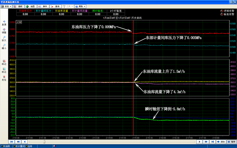 2013年1月26日東油庫(kù)-東部計(jì)量間泄漏報(bào)警曲線圖